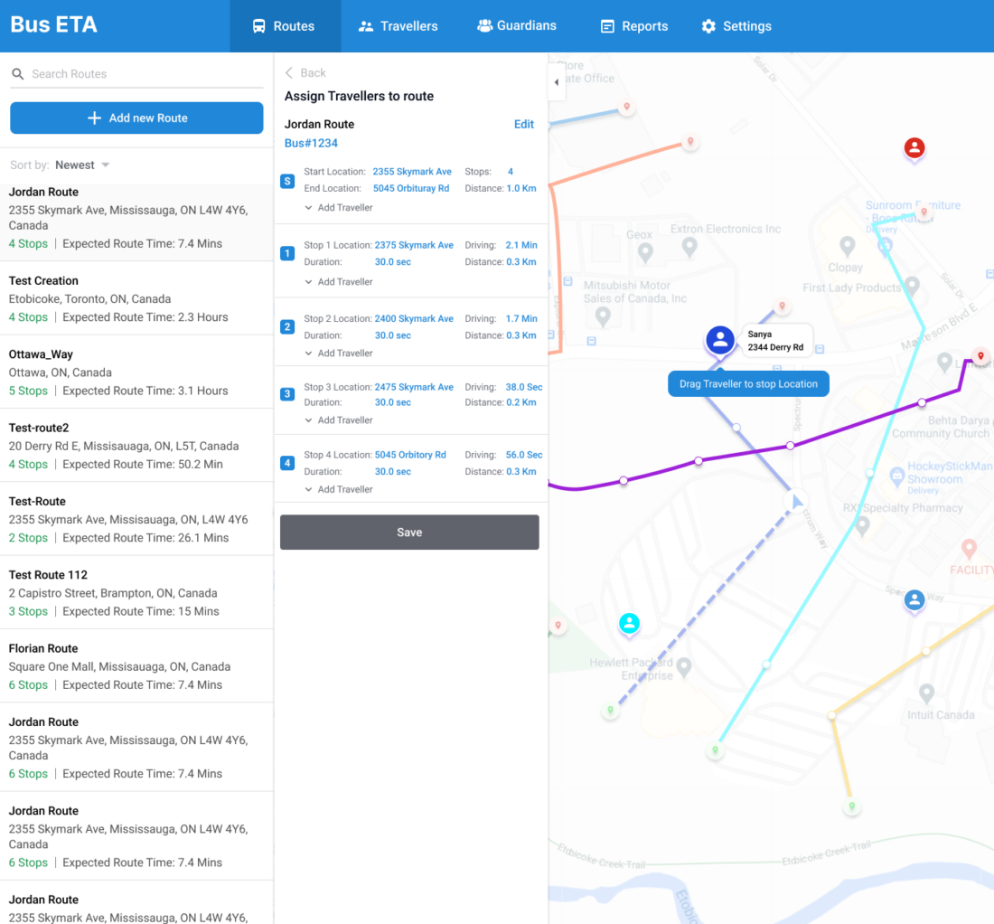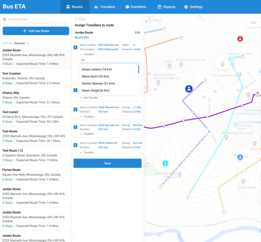 ZenBus enables fleet operators to easily create routes while allowing them to add and remove stops to see the impact on travel. With the help of historical data from a particular route, stakeholders can analyze and plan the best routes to save time and fuel.