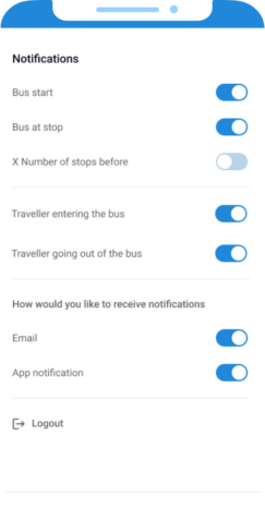 We have to show the mobile snapshots of the solution, right from log in to, select bus, Tracking activity and Alerts